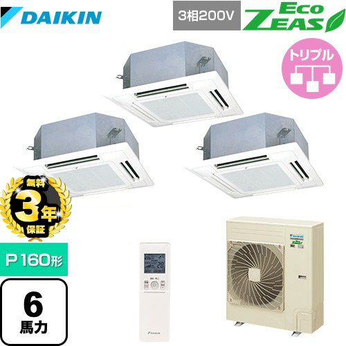 | 仕様・ 特徴 | 小スペースを快適にする小型カセット&4方向吹出し 天井埋込カセット形 マルチフロータイプ ショーカセ P160形 6馬力相当 トリプル 三相200V ワイヤレスリモコン 冷房能力:14.0(6.3~16.0)kW 暖房能力:16.0(7.2~20.0)kW 冷媒:R32 パッケージエアコン 抗菌・防カビフィルター 清潔アルミフィン フレアレスジョイント オートスイング 風量3段切替(急・強・弱) |