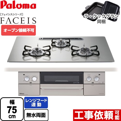 | 仕様・ 特徴 | 「FACEIS(フェイシス)」は、シンプルデザインの家事ラクなガスコンロ。 オーブン接続不可 幅:幅75cm 無水両面焼きグリル レンジフード連動 天板材質:クリアガラストップ 前面カラー:ステンレスフェイス ごとく色:ホーローゴトク ひろびろすっきりトップ※グリル排気口サイズ330×47mm ヒートカットトップ ツインシールド すっきりクリーンゴトク すっきりフェイス グリルサイドカバー フッ素焼き網 クリアコート受皿 ラ・クックグランオート オートメニュー機能 コンロ調理タイマー 温度キープ機能 煮込み機能 自動炊飯機能 湯沸し機能 高温炒め機能 スムーズスライドレール式グリル(クローズアシスト付) グリル調理タイマー 遠赤外線グリル ワイドグリル あんしんモード |