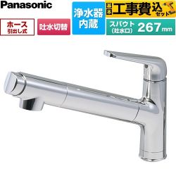 パナソニック 混合水栓サラサラワイドシャワー 浄水器一体 キッチン水栓 JUA06FPSNEB 工事費込