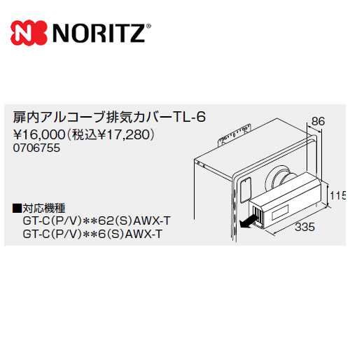 ノーリツ ガス給湯器部材 扉内アルコーブ排気カバー (本品のみの購入不可)≪TL-6≫