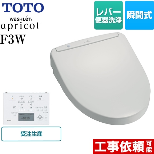 | 仕様・ 特徴 | F3W 瞬間式 レバー便器洗浄タイプ においきれい 温風乾燥 エロンゲート(大型)・レギュラー(普通)サイズ兼用便座 瞬間暖房便座 オート開閉 リモコン便座・便ふた開閉 やわらかライト プレミスト 抗菌 フチなしウォシュレット ノズルそうじ 水勢調節 洗浄位置調節 ダブル保温便座 オートパワー脱臭 脱臭 着座センサー |