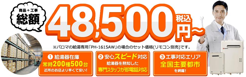 ガス給湯器・基本工事・処分費・無料保証すべてコミコミ価格