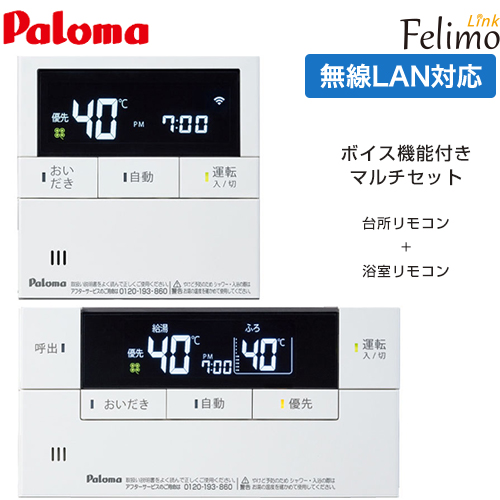 パロマ Felimo Link(フェリモリンク) ガス給湯器部材 無線LAN対応リモコン ボイスリモコンマルチセット 台所リモコン+浴室リモコン セットリモコン ≪MFC-E228V≫